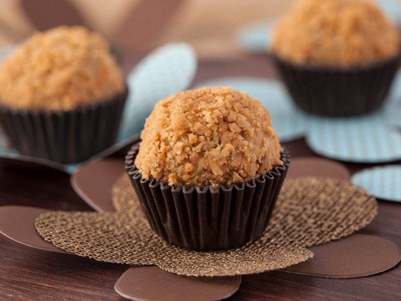 Brigadeiro de paçoca recheado com brigadeiro meio amargo