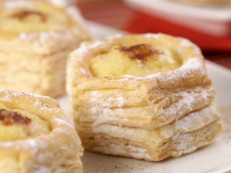 Recheie os vol-au-vents com o curau e sirva polvilhados com açúcar de confeiteiro e canela em pó.