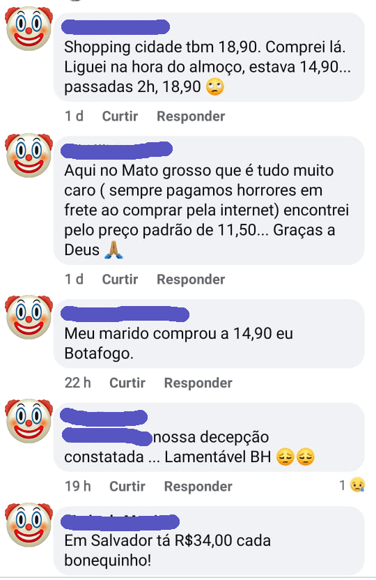 Enquanto isso, o Renato lá em São Paulo, descobria outros problemas ainda maiores: aparentemente, além de ter se esgotado rapidamente em diversas cidades, existiu o problema de que as lojas estavam cobrando preços diferentes pelos bonecos. Não se sabe se por má fé das lojas ou por falta de orientação da própria rede, os preços mais que triplicavam.