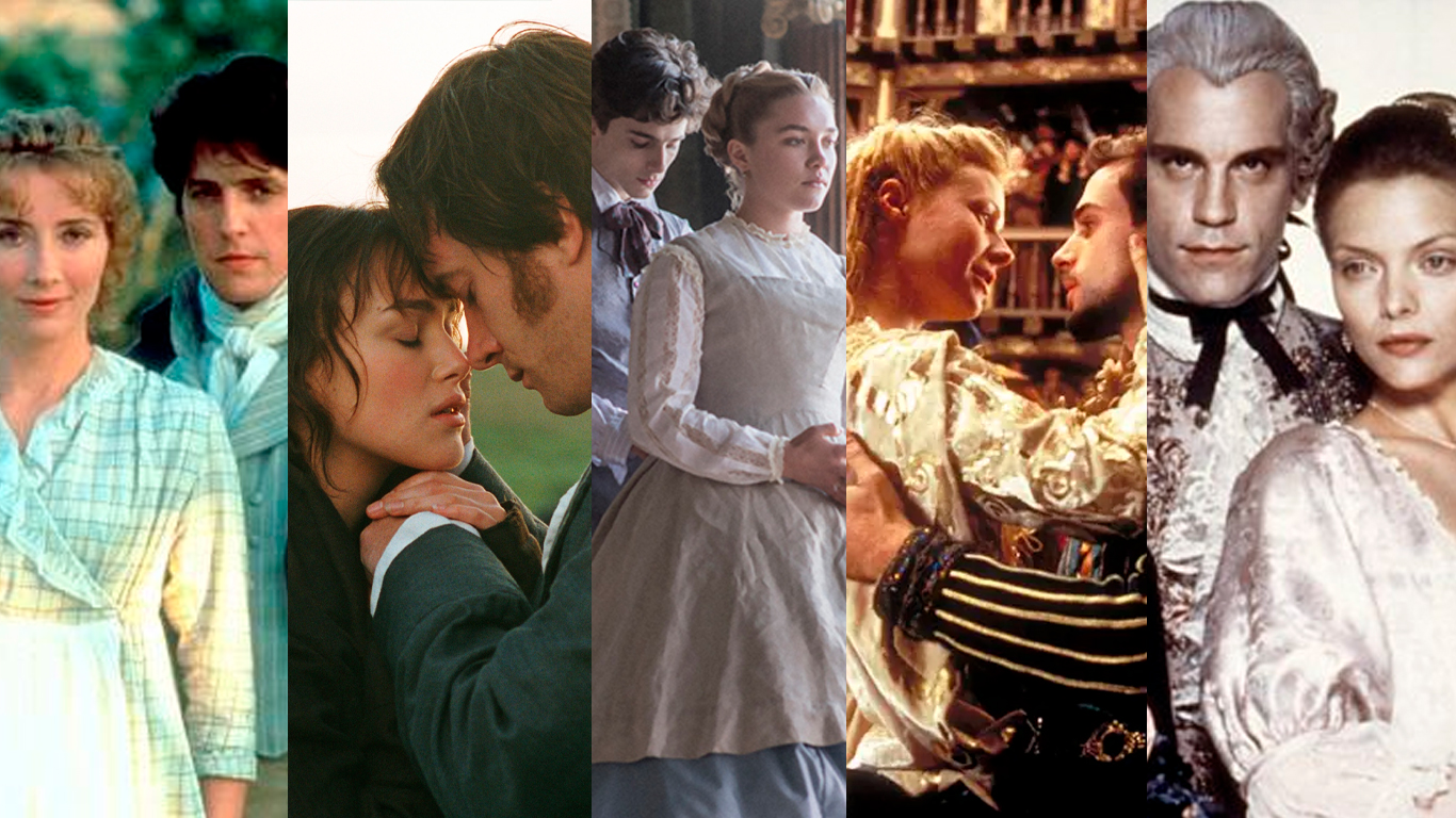 Peitos arfantes em corpetes apertadíssimos, amores proibidos, cavalheiros galanteadores e muita intriga… os elementos básicos de Bridgerton, emprestados descaradamente de Jane Austen, estão todos lá. E existem muitas outras histórias que podemos acompanhar no cinema que também trazem estes elementos.