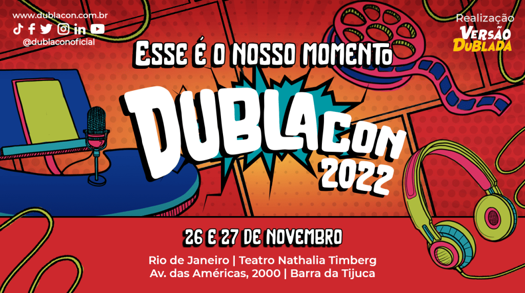 Depois de uma edição totalmente no formato digital em dezembro do ano passado, com 12h de evento e visto por mais de 30 mil pessoas no YouTube, a DublaCon 2022 – A Convenção de Dublagem, primeira convenção sobre dublagem do mundo, acaba de ganhar data e local para a sua edição deste ano.