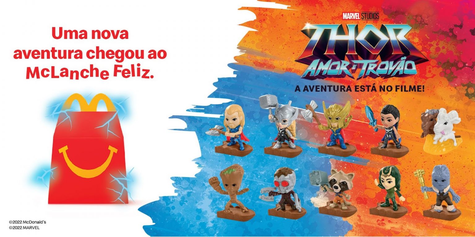 Com a chegada do novo filme do Thor aos cinemas, chega também a nova coleção do McLanche Feliz: miniaturas dos personagens de Thor: Amor e Trovão.