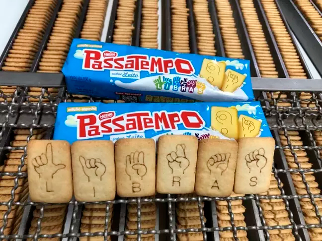 A inclusão das ilustrações em Libras exigiu alterações e atualizações nos equipamentos da fábrica da Nestlé em Marília, no interior de SP. “Precisamos modificar vários mecanismos do processo de fabricação do produto para representar os sinais. Depois de muitos anos, não colocamos a nossas tradicionais imagens de ‘animais Passatempo’ para trazer essa novidade”, comenta Cervi.