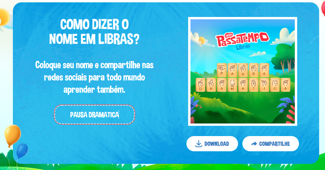 No site é possível saber mais sobre a Linguagem Brasileira de Sinais, aprender como traduzir cumprimentos, alimentos e outras palavras e também escrever seu nome e aprender como representá-lo em Libras.