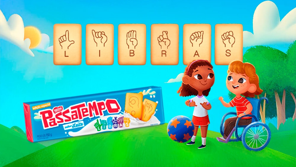 A Nestlé inovou e lançou uma edição mais do que espetacular da bolacha (biscoito?) Passatempo: agora os tradicionais desenhos de animais foram substituídos por imagens ensinando as crianças a fazerem a Língua Brasileira de Sinais (Libras).