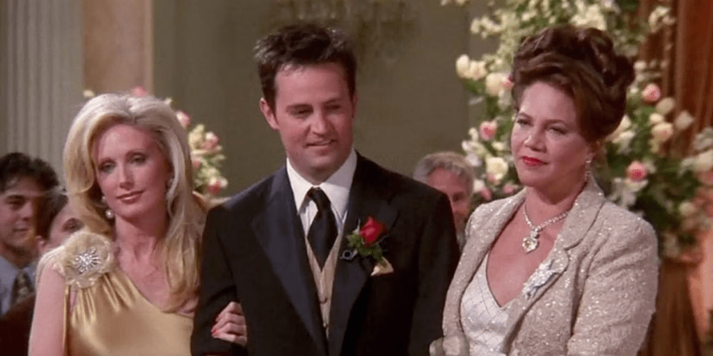 Infelizmente nos anos 90 a comunidade LGBT era alvo fácil de piadas na TV e no cinema. Basta lembrar das novelas brasileiras e como o personagem gay era sempre o alívio cômico. E Friends não ficou longe disso. Desde o momento que o pai de Chandler se tornou uma mulher trans a personagem foi motivo de piada. E não só isso, Chandler fazia questão de “errar” seus pronomes e se constranger ao vê-la vestida de mulher em seu casamento.