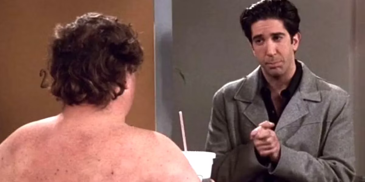 O problema aqui é o apelido dado a ele pelo grupo. O que nos leva a outro caso de gordofobia quando Phoebe admite que ele era bonito antes de ganhar peso. Até mesmo o fato dele ser chamado de “feio” hoje é questionável. Afinal de contas, quem pode dizer que alguém é feio?