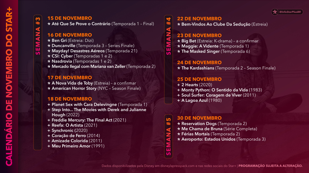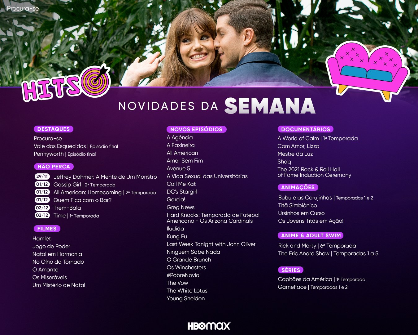 Veja a lista dos lançamentos da semana na Netflix, HBO Max, Disney+ e os principais streamings.