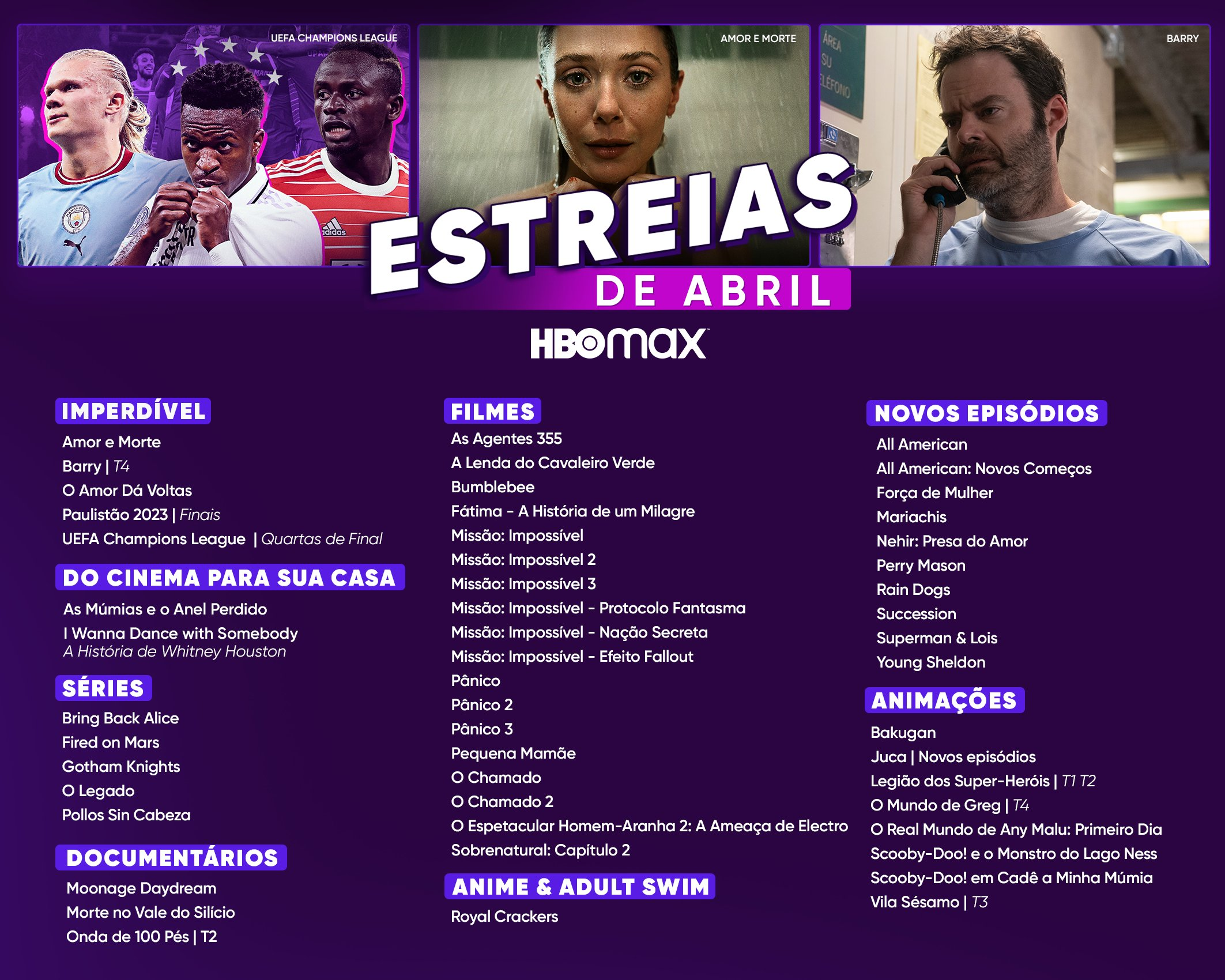 Confira as estreias de abril na Netflix, Disney+, Star+, HBO Max, Amazon Prime e outros.