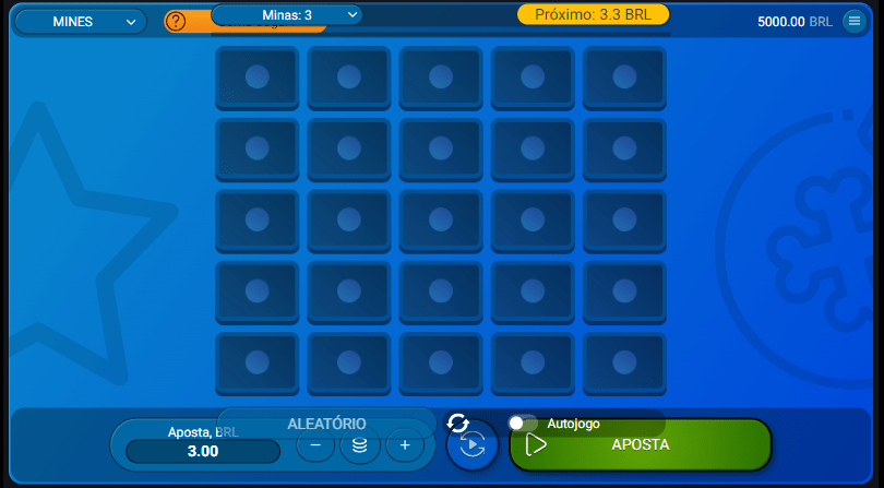 Quase todos os elementos de Campo Minado estão no Mines, inclusive as bombas que encerram o jogo. A diferença está no objetivo de multiplicar a aposta inicial, algo feito com as estrelas escondidas no campo de 5×5. São elas que vão multiplicando o valor, e garantindo ao jogador mais ganhos em dinheiro real. São 25 quadrados diferentes, com o número de minas escondidas personalizáveis. É possível jogar com apenas uma, e assim cada estrela multiplica menos, ou até 20, deixando o jogo mais difícil para vencer na rodada.