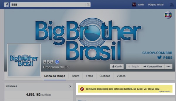 Com o começo do Big Brother Brasil as timelines do Facebook, Twitter e afins ficam cheias de comentários dos fãs mais afoitos. Caso você não seja um desses adeptos, pode muito bem instalar uma extensão para o Google Chrome e bloquear todas as postagens referentes ao programa. O NoBBB é um plugin disponível para Google... Continuar Lendo →